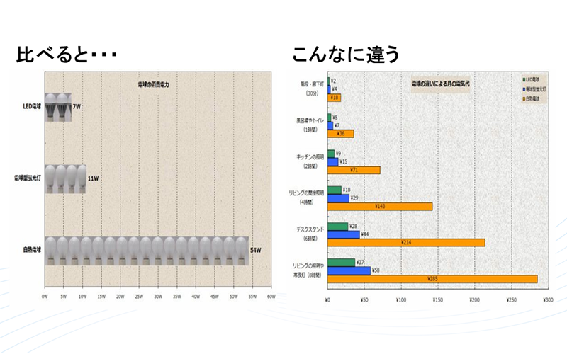 白熱電球よりもLED電球の方が寿命が長く、消費電力も少ないので電気料金の削減や地球環境への配慮に繋がります。お客様自身で作業の出来ない高所でも当社にお任せください。